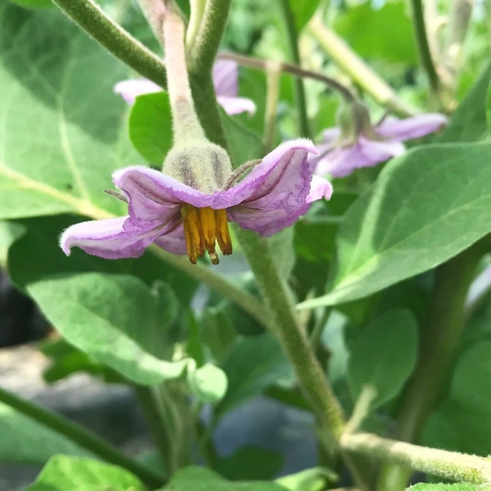 These eggplant blossoms are an exciting sign of what’s to come, but they don’t look like much from above, especially to an unfamiliar eye.